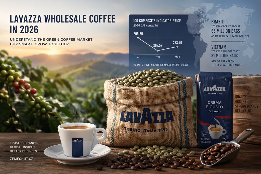 In this environment, Lavazza continues to stand out as a strong wholesale brand because it combines consumer recognition with industrial scale. Lavazza states that it operates in 140 markets and has 9 production facilities in 5 countries. For distributors, retailers and HoReCa buyers, that matters because dependable brand demand and broad production capacity are key advantages when the raw coffee market is under pressure. At zemechut.cz, our main focus is Lavazza wholesale in both small and large quantities for customers who value consistency, trusted branding and practical market knowledge